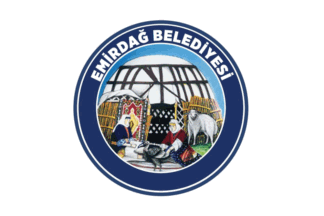 The flag of Emirdağ (photo, photo) is white with the municipality's emblem in the middle. "Belediyesi" means "Municipality".