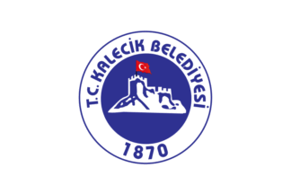 The former flag of Kalecik (photo, photo) was white with the municipality's former emblem, which features a realistic representation of the castle of Kalecik. "Belediyesi" means "Municipality".