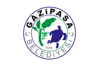 The flag of Gazipaşa is white with the municipality's emblem in the middle. "Belediyesi" means "Municipality".
