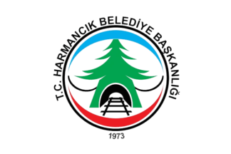 The flag of Harmancık (photo) is white with the municipality's emblem in the middle. "Belediyesi" means "Municipality".