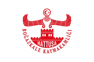 The former flag of Boğazkale (photo) is white with the municipality's emblem in the middle. "Belediyesi" means "Municipality".