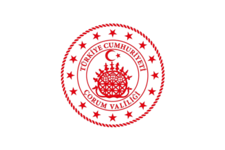 The flag of Çorum Province (photo) is white with the province's emblem in the middle. "Türkiye Cumhuriyeti" means "Republic of Turkey"; "Valiliği" means "Governorate".