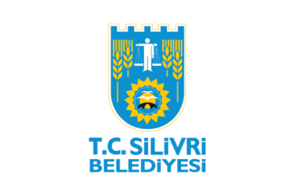 The flag of Silivri (photo, photo, photo, photo), also used vertically, is white with the municipality'so emblem. "Belediyesi" means "Municipality".