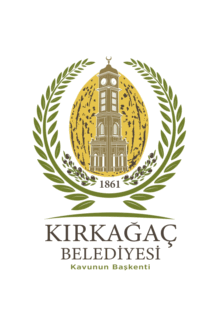 The flag of Kırkağaç (photo) is white with the municipality's emblem in the middle. "KIRKAǦAÇ BELEDİYESİ" means "Kırkağaç Municipality".