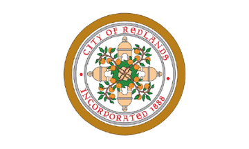 Redlands has a flag, with the new city seal, on a white background: