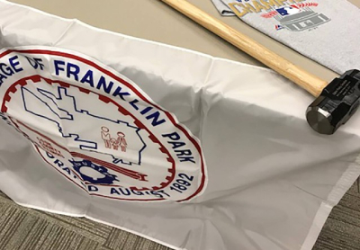 The flag for the village of Franklin Park, Cook County, Illinois, consists