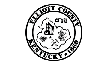 The seal shows the county outline with a number of symbols representing various industries, particularly the Mining, oil, natural gas, and agricultural sectors. In the center of the outline is a bold star representing the city of Sandy Hook, the county seat.