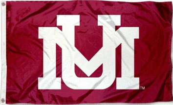 The flag is maroon with the letter-mark of overlain M and U in white.
