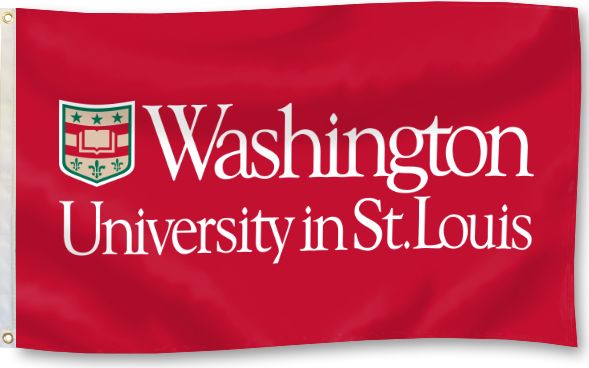 A nice photo of a banner of the arms of Washington University in St. Louis (Missouri), USA, hoisted on a fixed flagpole, can be seen at www.artsci.wustl.edu/~lbulawsk/images/bannerflag_opj.jpg. The arms, which are based on those of President Washington, are Argent two bars Gules in chief three mullets and in base three fleurs-de-lys Vert, over all an open book proper inscribed "Per veritatem vis."