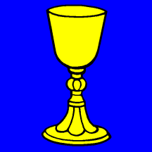 - A ceremonial cup usually in some precious metal, occasionally covered or shown with a communion wafer,