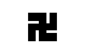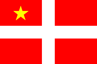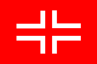 flag, canton or panel, whose arms are generally (but not exclusively) flat-ended but which are wider at