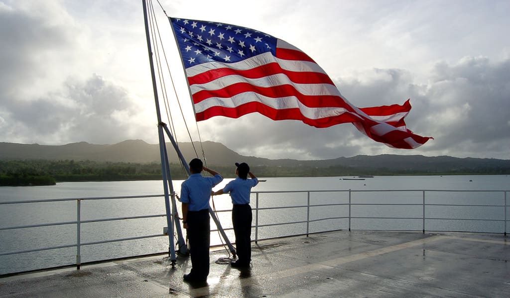 2) In the case of a naval ship the ensign is flown from either an ensign staff at the stern or from the