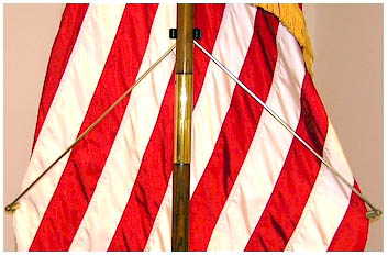 In largely (but not exclusively) US usage a metal implement designed to ensure that an indoor flag is properly displayed when hung from a vertical, freestanding pole (see also indoor flag and tangle rod).